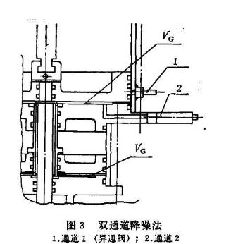 采用異通閥降噪的方法,存在著閥門開啟過程的速度較慢、VG值小較難控制的缺點(diǎn)。但從設(shè)計分析和試驗(yàn)實(shí)踐來看,前者可調(diào)整異通閥進(jìn)氣阻尼流道截面的大小,達(dá)到噪聲與速度相互適應(yīng)的程度。后者可提高制造水平來控制各道加工質(zhì)量,可用調(diào)整墊以獲得較小的 VG值。能滿足這二個條件則此方法是適用的。