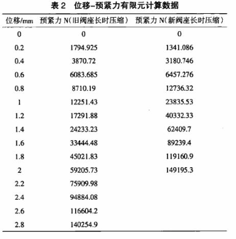 系統加載后球體與左閥座是否脫開圖3閥座幾何尺寸根據計算參數和圖表,舊閥座的63為1.2 mm,新閥座的為0•82 mmo由4」的公表2位移一預緊力有限元計算數據位移/ ] 預緊力 NC舊閥座長時壓縮) 預緊力N(新閥座長時壓縮 )式判斷出,在安裝新或舊閥座時,系統加載后閥門的球體均未與左閥座脫開。